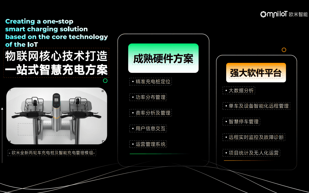:歐米智能無線充電樁采用磁共振無線充電技術,實現車輛智能無線充電系統,避免來回換電、集中充電等帶來的安全隱患,歐米無線充電樁充滿自動斷電、溫度檢測功能能有效做到充電安全管控及危險防范 成本:有效避免目前平臺運營,增加配置30%換電電池需求,平均每臺車降低600-1000元的固定成本 管理:目前平臺運營,集中換點,每天需要大量的來回調 度,增加成本的同時影響用戶騎行。采用無線充電樁,減少來回調度任務,同時采用線上任務模式,讓用戶自主還車到充電樁,獲得額外 獎勵等激勵形式