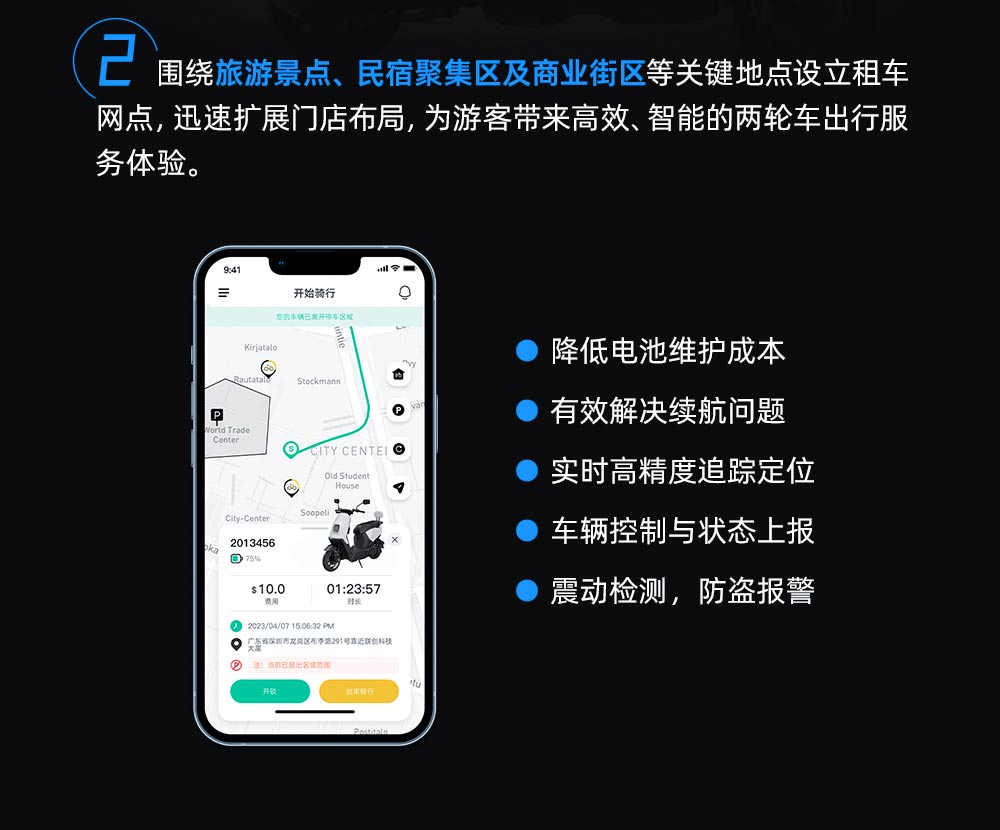 1.? 精準定位?:采用先進的定位技術,確保車輛位置信息的準確無誤。 2.? 防盜報警?:一旦車輛發(fā)生異常移動或震動,定位器會立即發(fā)送報警信息至用戶手機,有效防止車輛被盜。 3.? 軌跡查詢?:用戶可隨時查看車輛的行駛軌跡,了解車輛的歷史位置信息。 4. 智能管理?:結合云平臺技術,實現(xiàn)電動車的遠程監(jiān)控和管理,提高管理效率。 5.? 兼容性強?:支持多種車型和品牌,滿足不同用戶的需求。
